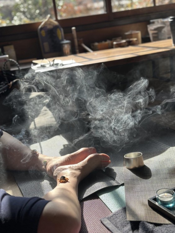 ◎腎を補い冷えを改善するツボとツボの正しい探し方をお伝えし、せんねん灸でお灸してもらいました