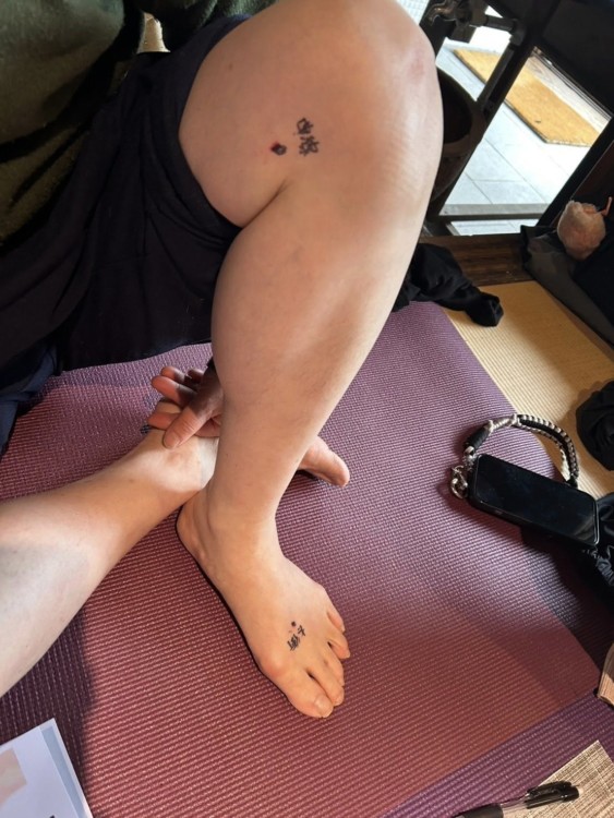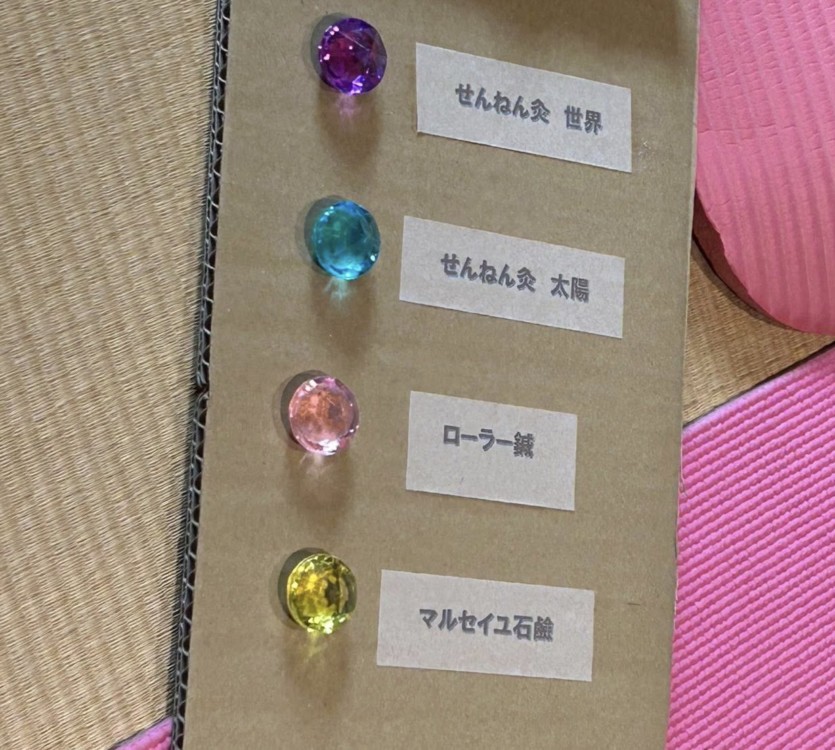 筋肉の緊張を一緒に確認し、今の自分に必要な穴(ツボ)を探し、せんねん灸でお灸タイム