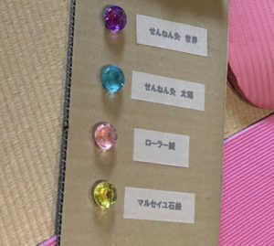 お灸のお土産は、段ボールで手作りした『ガラポン』回してくじ引き大会