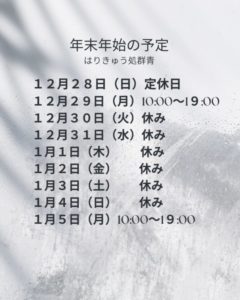 年末年始と2026年1月のお知らせ